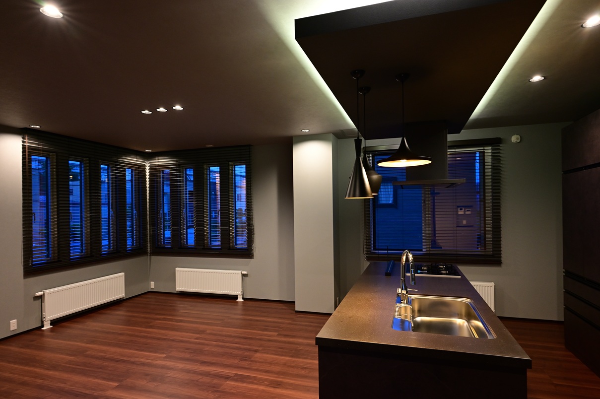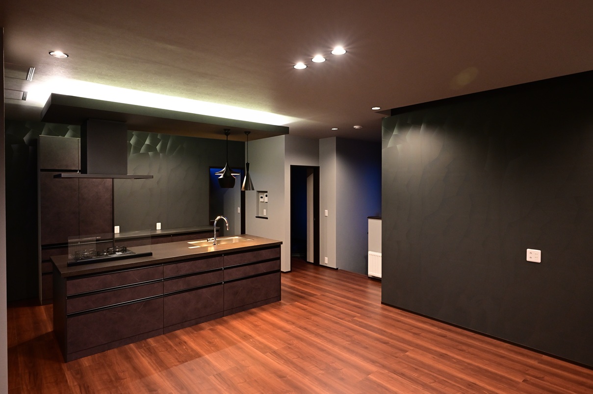 夫婦で料理ができるようにアイランドキッチンにして頂き、照明や細部にまでこだわって設計してもらいました。